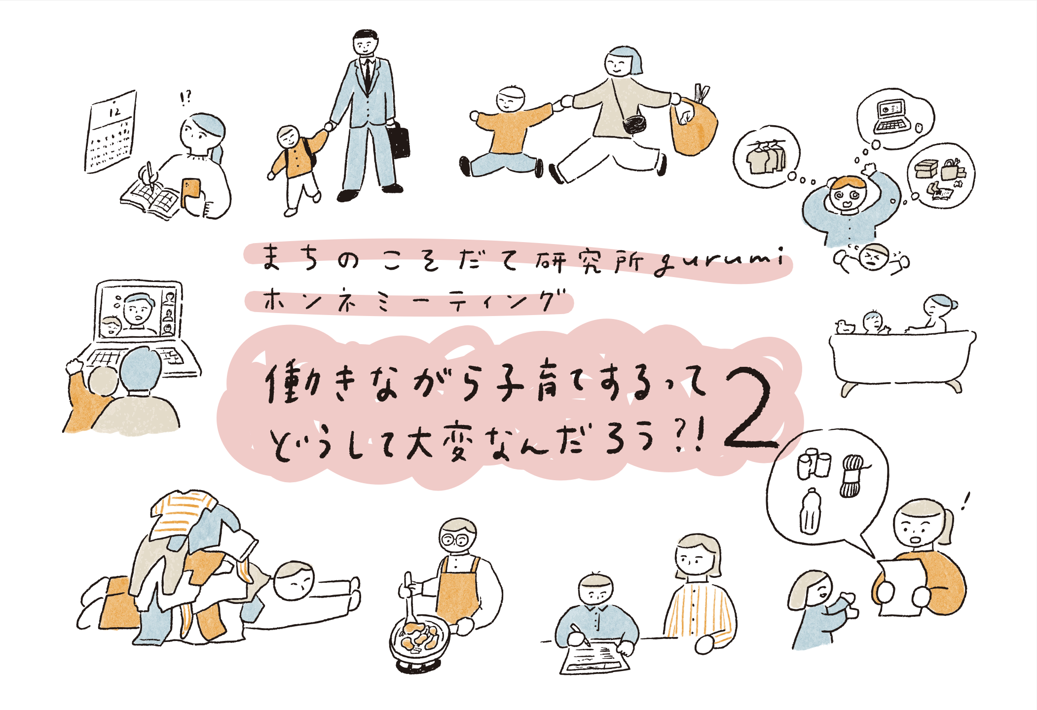 gurumiで前回好評だったホンネミーティング第2弾。今回も働きながら子育てするってどうして大変なんだろう!?」というテーマで話し合っていきます。仕事と育児と自分のことを紐解く「個人タイム」と、みんなのホンネを聞き合う「グループタイム」を通じて、今を見つめ、振り返り、未来を考える時間をつくりたいと思います。